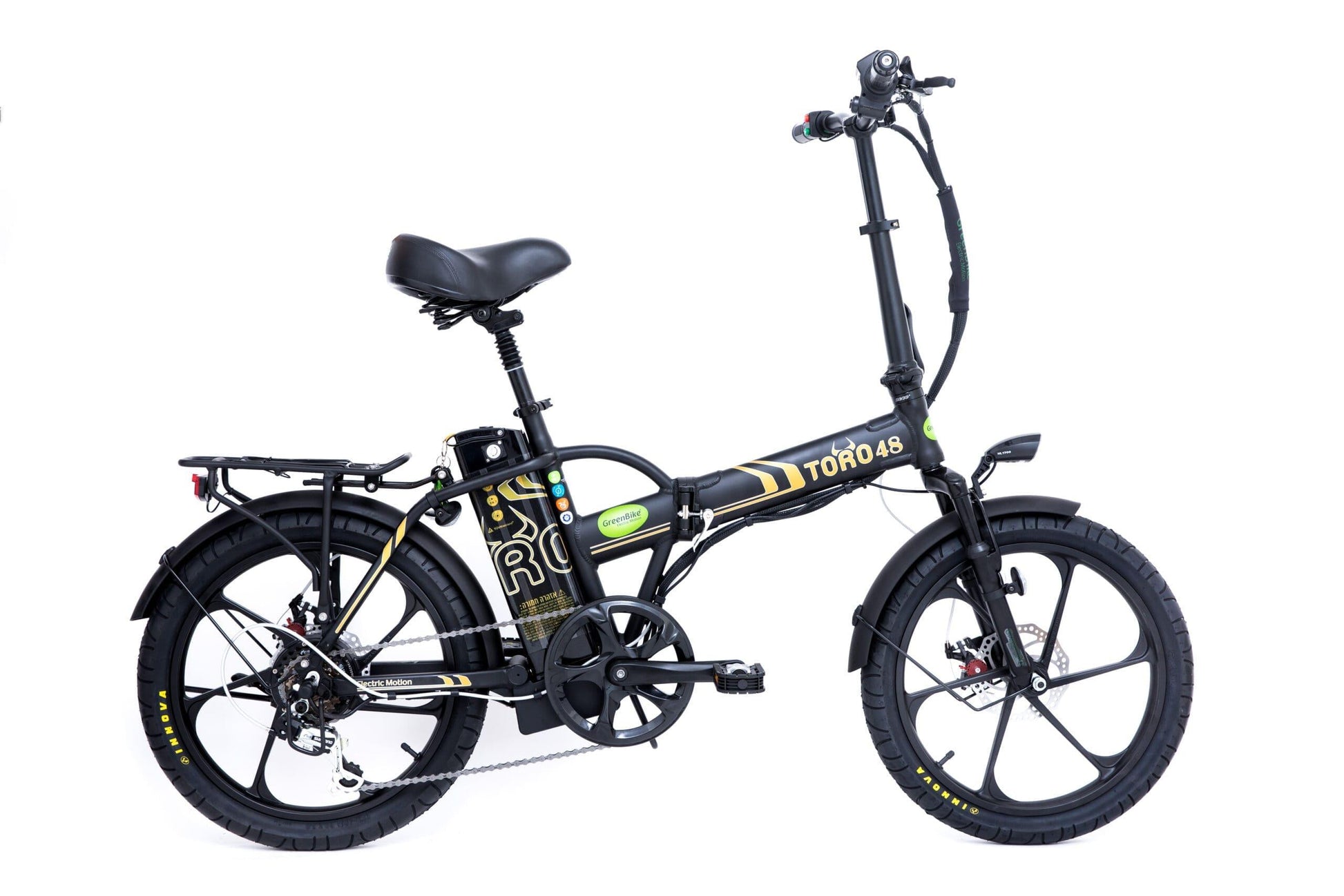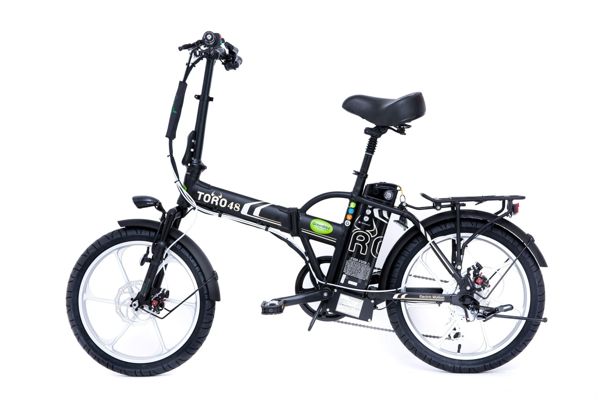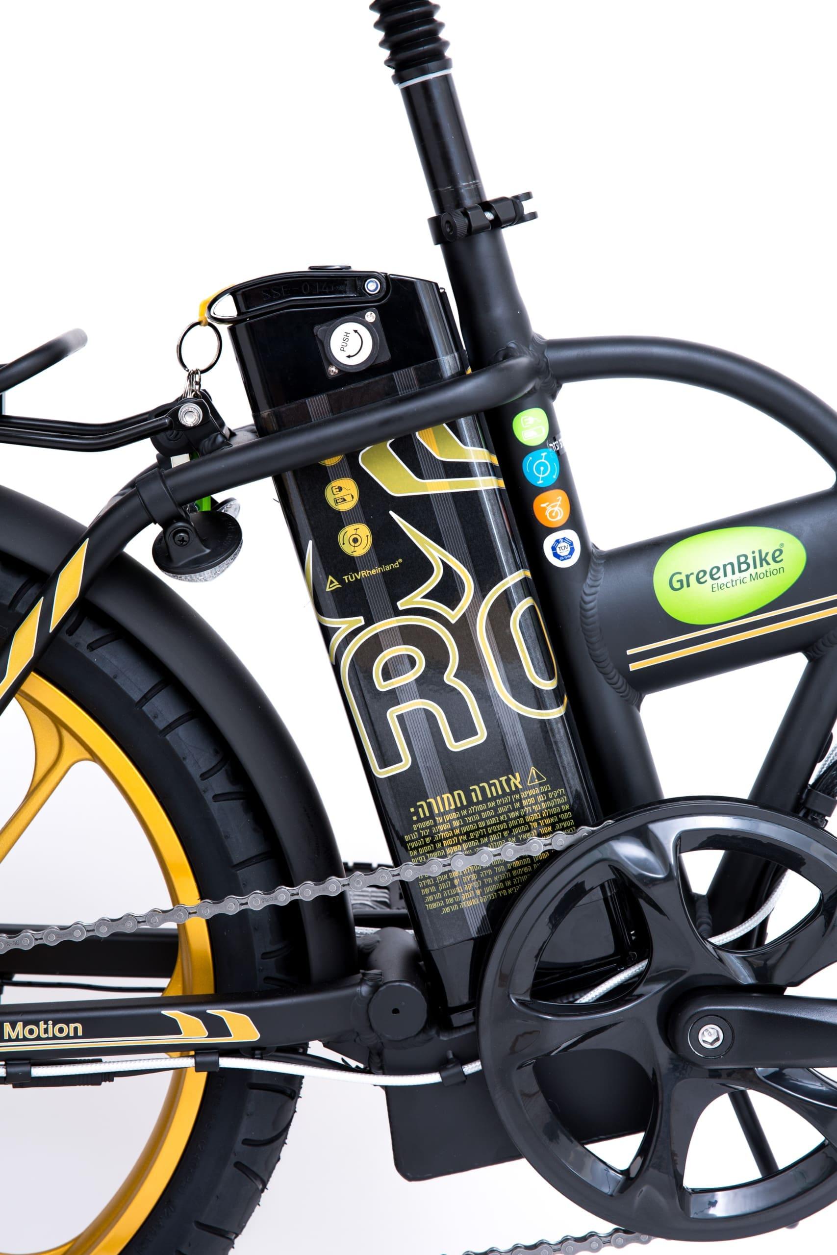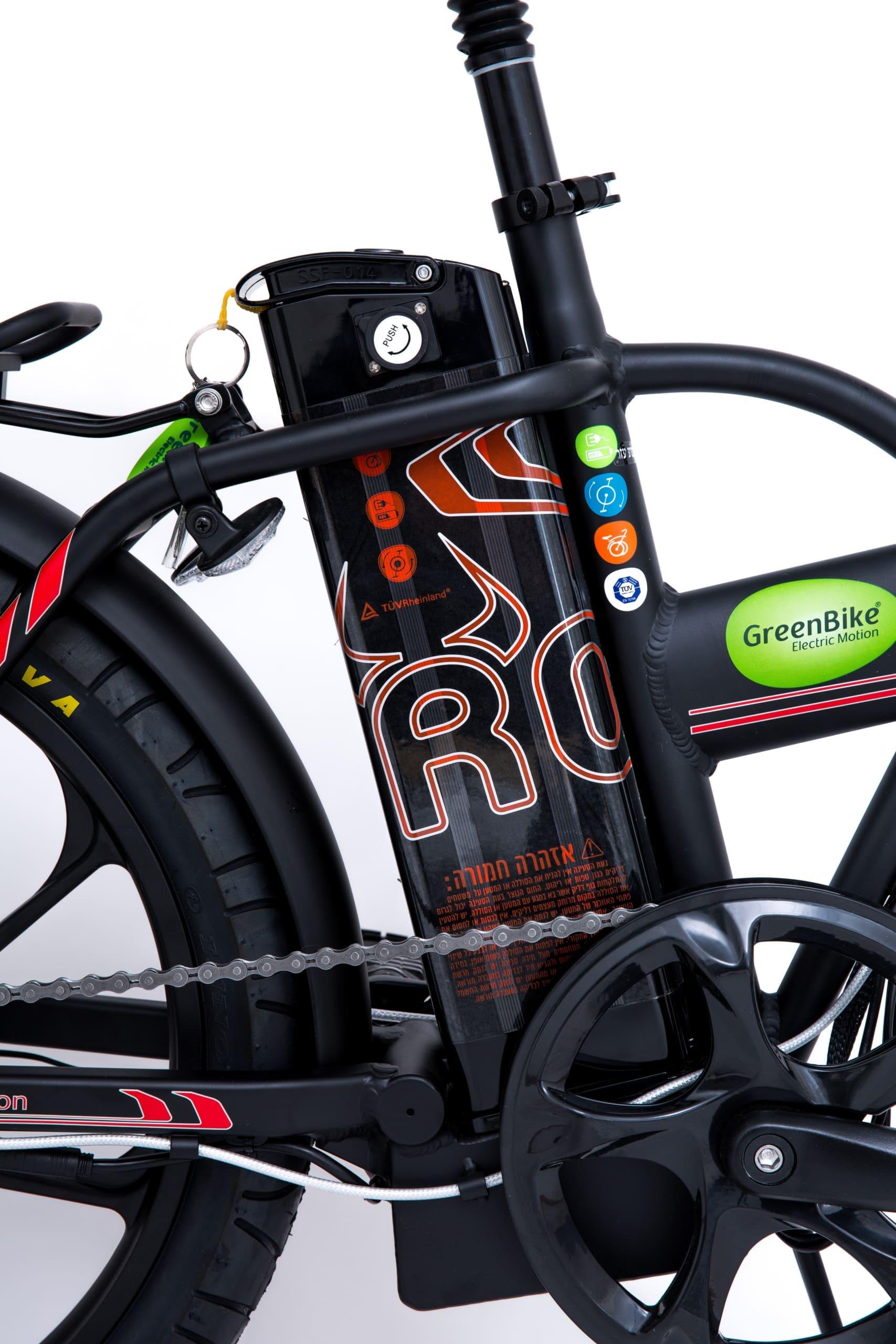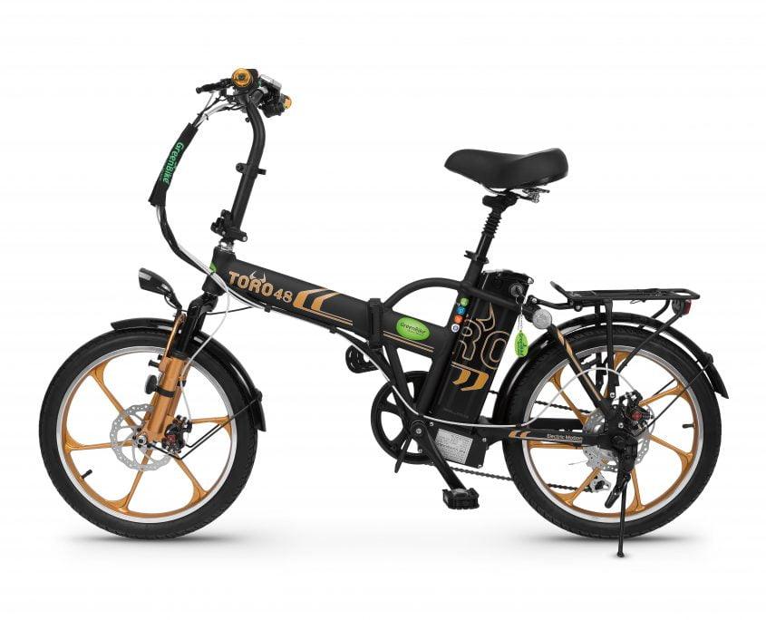 אופניים חשמליים מתקפלים גרין בייק טורו 48 וולט, 10.4 אמפר, גלגלי מגנזיום מוצג דיגיטלי.