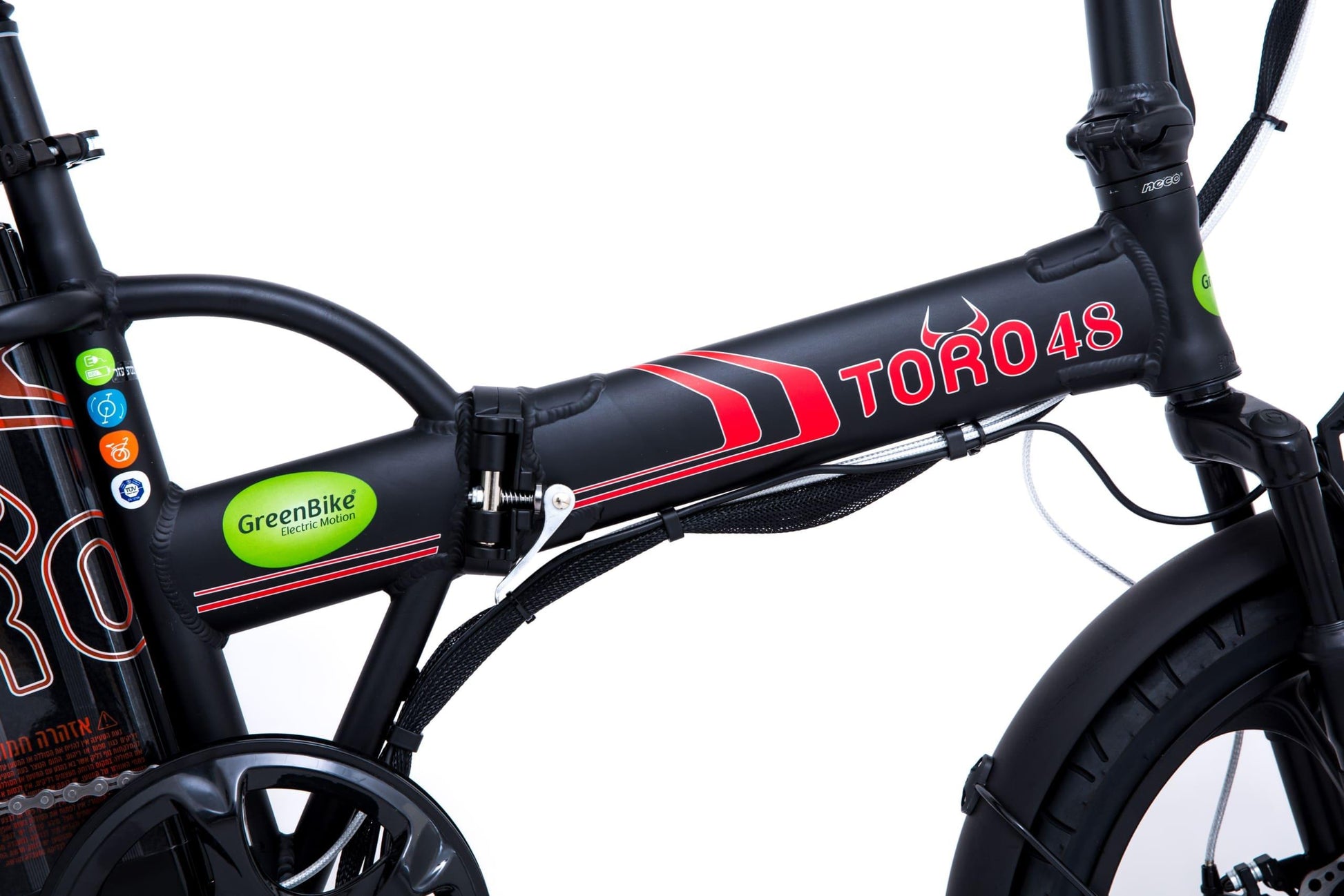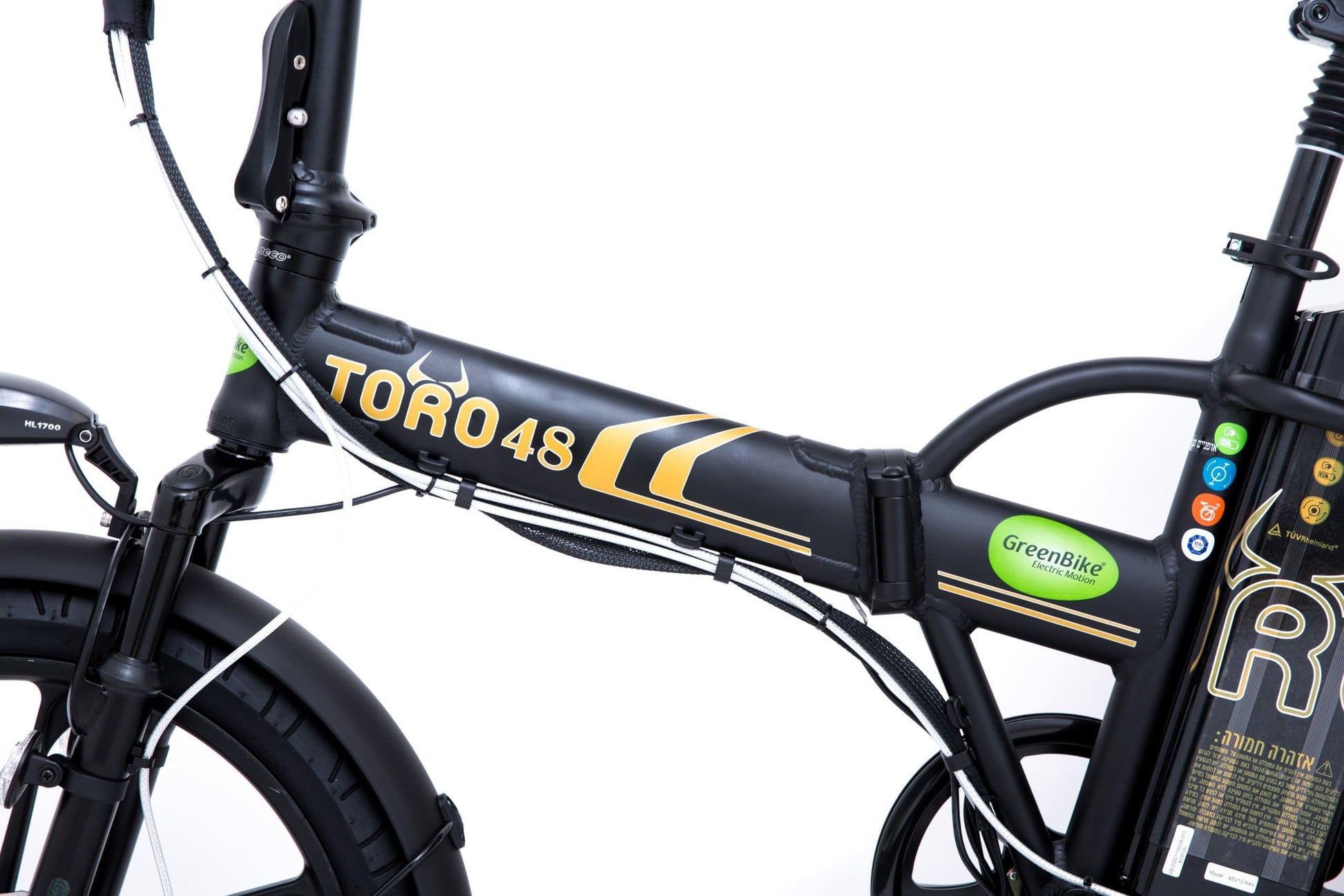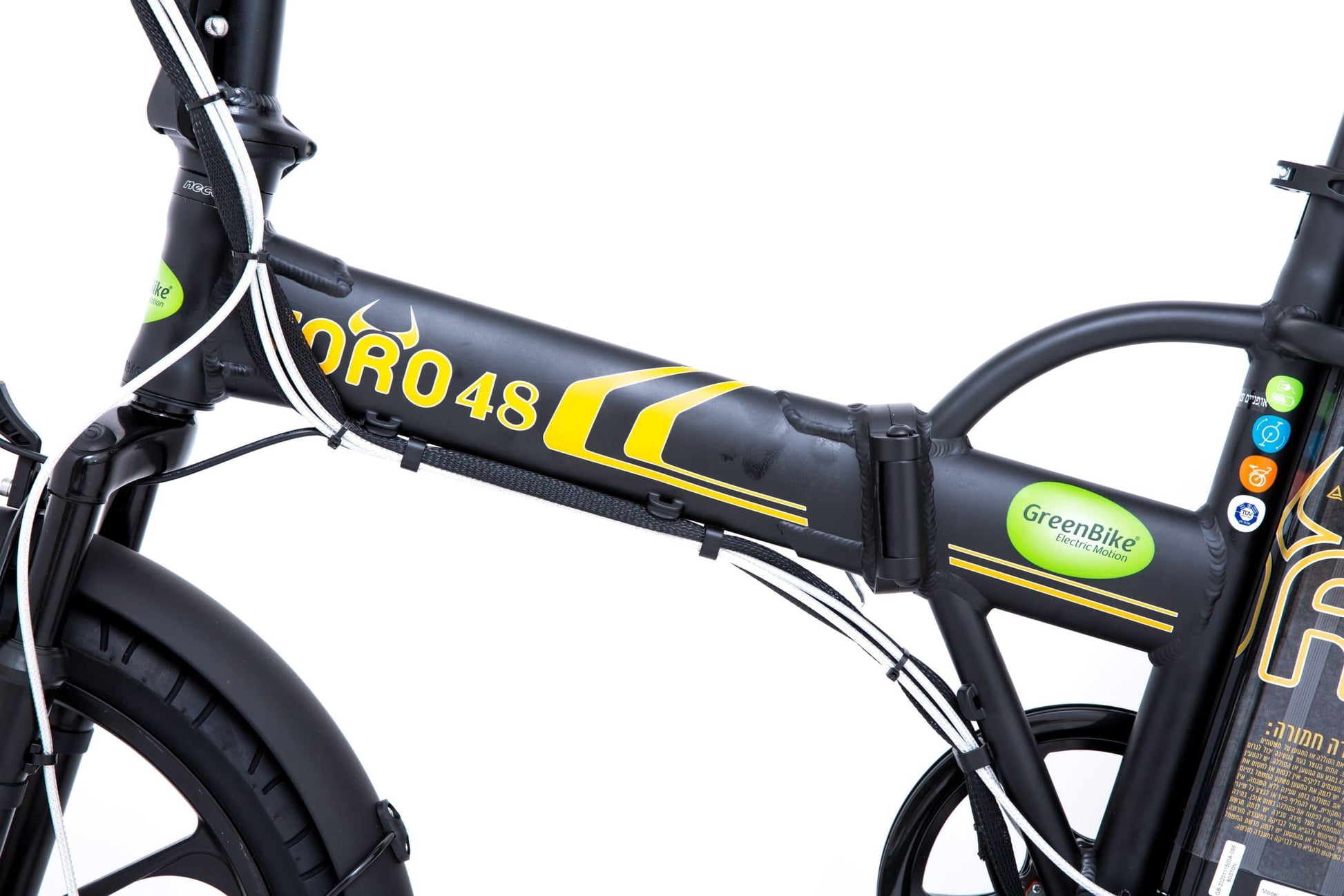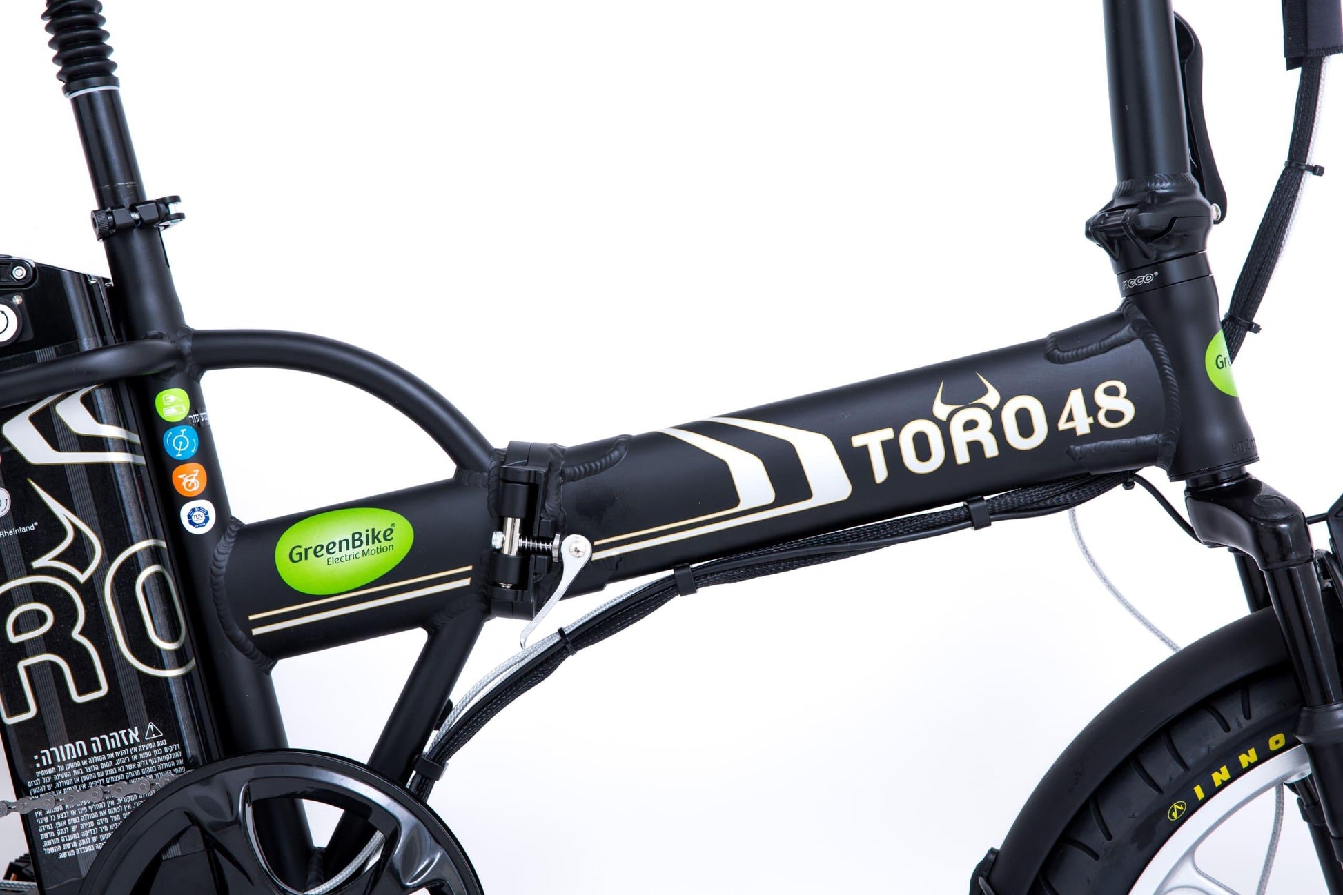 אופניים חשמליים מתקפלים גרין בייק טורו 48 וולט, 10.4 אמפר, גלגלי מגנזיום מוצג דיגיטלי.